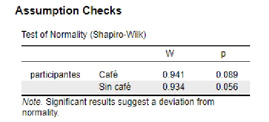 En la siguiente tabla se muestra la prueba de normalidad donde vemos que los dos valores p son mayores a 0.05 lo que nos hace aceptar nuestra hipótesis nula de normalidad