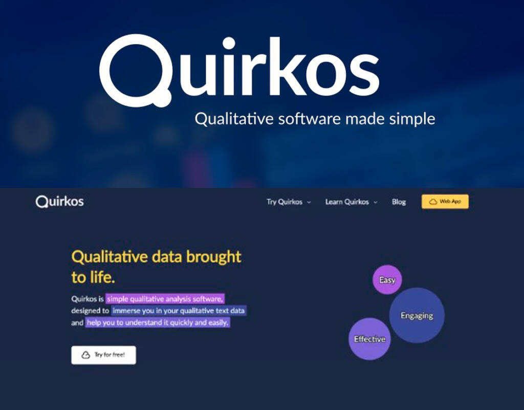 Es un programa simple para análisis cualitativo, el cual se caracteriza por sus funciones para el trabajo colaborativo gracias a su versión Quirkos Cloud, que tiene un excelente respaldo en la nube, sincronización automática constante, edición en tiempo real y disponible en distintos dispositivos (tablet, computador y celular; Quirkos, 2022). Permite importar y exportar diferentes tipos de datos de texto e incluso de otros software de análisis cualitativo. Además de tener servicio de transcripción, permite asignar los códigos de manera rápida (con solo arrastrar y soltar la selección de texto), mientras organiza las fuentes y códigos a conveniencia; también permite filtrarlos de manera rápida y precisa, mientras permite analizar los datos siguiendo distintos diseños como teoría fundamentada, análisis temático o el análisis fenomenológico interpretativo. Otra de sus ventajas es que brinda bastantes facilidades para mostrar los resultados en informes y artículos investigativos, como seleccionar citas relevantes por género, edad, etc.; vistas detalladas en gráficas con texto codificado según su conveniencia, y permite incluso crear un sitio web dinámico, personalizado e interactivo con los hallazgos, mediante el cual los visitantes pueden explorar y comprender mejor los resultados de la investigación (Quirkos, 2022).